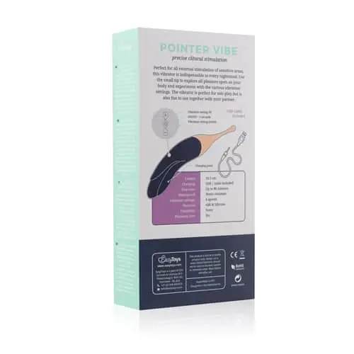 De Pointer Vibe is het ideale speeltje voor externe stimulatie! Deze vibrator heeft een zeer smalle, ronde top waarmee je elk gevoelig plekje op het lichaam gericht kunt stimuleren. Het speeltje is voorzien 4 vibratiesnelheden en kan worden opgeladen met de bijgeleverde USB-kabel. Ook is de Pointer Vibe spatwaterdicht. Je kunt hem dus veilig meenemen onder de douche. Maak de vibrator voor en na gebruik schoon met toycleaner of een milde, antibacteriële zeep voor een goede hygiëne.