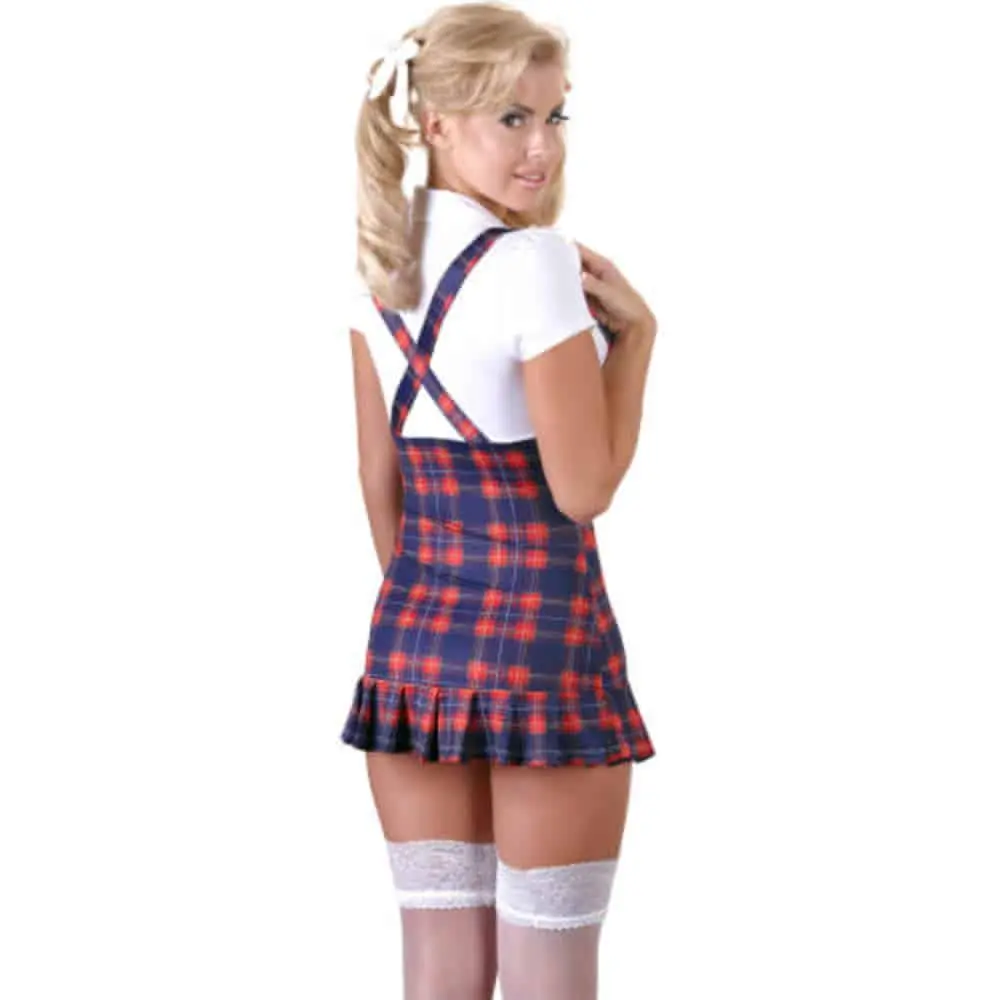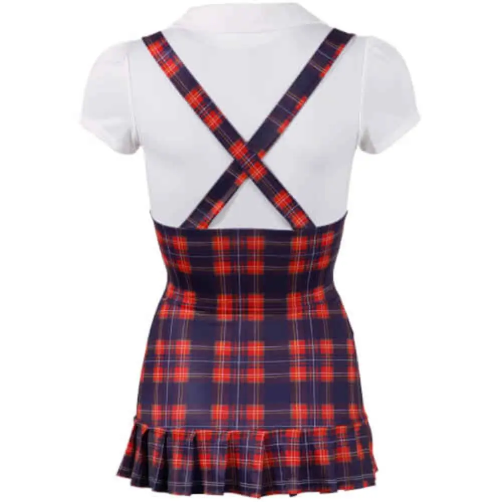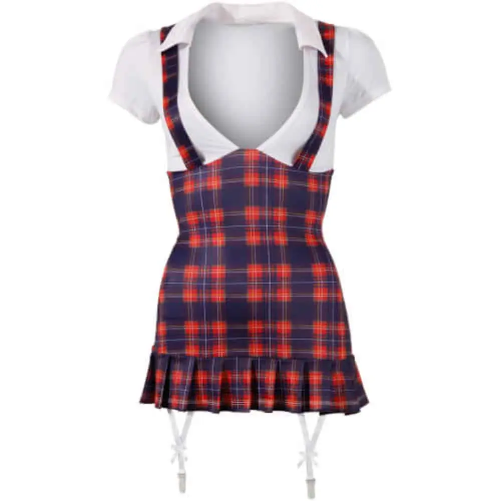 Jouw schoolmeisje-rollenspel is niet compleet zonder een sexy schoolmeisje outfit! Deze mini-jurk van netstof heeft aan de voorkant een verleidelijke rits over de gehele lengte. Met halter, twee jarretels en twee zakken aan de voorkant.