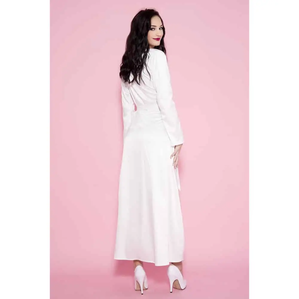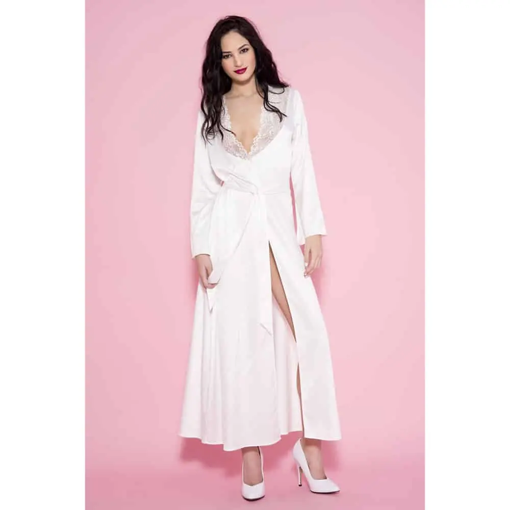 Deze lange satijnen kimono van Music Legs is gemaakt van glad, zacht materiaal voor optimaal comfort. Draag hem tijdens een sexy avond of avondje relaxen en ontspannen. Het laag uitgesneden decolleté is afgewerkt met een extra brede kanten rand. De satijnen band is eenvoudig te knopen waardoor je taille geaccentueerd wordt. Wanneer ga jij deze comfortabele musthave dragen?