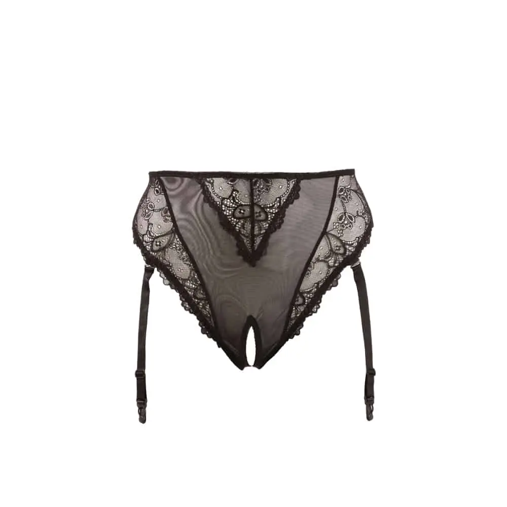 Deze zwarte jarretel slip mag niet ontbreken in jouw lingerie collectie! Creëer eenvoudig en snel een sexy jarretel look met deze zwarte jarretel slip uit de Cottelli Collection. Deze high waist slip is gemaakt van doorschijnend materiaal en is afgewerkt met kanten details. De afneembare jarretelbandjes zijn eenvoudig te bevestigen aan jouw favoriete kousen waardoor je zonder moeite een sexy jarretel look krijgt. Maak je set compleet met een sexy BH en jij bent helemaal klaar om te verleiden. Ook wanneer jouw partner zich niet langer kan beheersen kunnen jullie ongestoord doorgaan. De slip is namelijk voorzien van een open kruis!