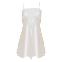 Flores Sexy Slipdress Satijn Met Kanten Borst – Wit